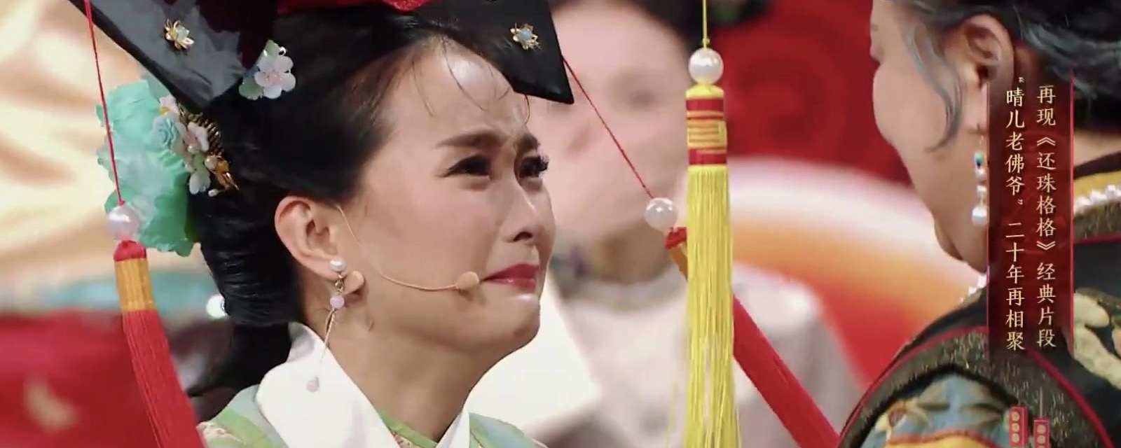 《王牌对王牌》第四季中,《还珠格格》剧组出现在第八期节目中,当时全场泪崩,尤其是老佛爷出场的时候,能够看到饰演晴格格的王艳整个人都扑倒在赵敏芬老师身上。这也难怪,两人在还珠格格中是关系最亲密的一对“祖孙”,20年后能够在节目中相聚,势必会有不一样的感觉。